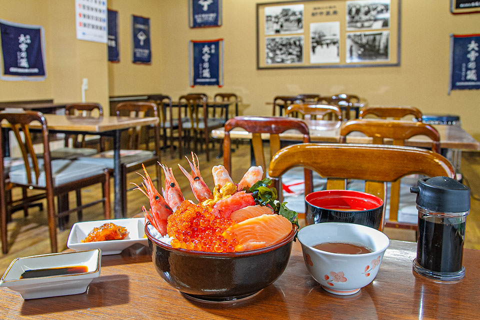 潮風の香りを感じながら堪能する新鮮な魚介定食。市場ならではの喧騒を肌で感じながら楽しむ丼飯。