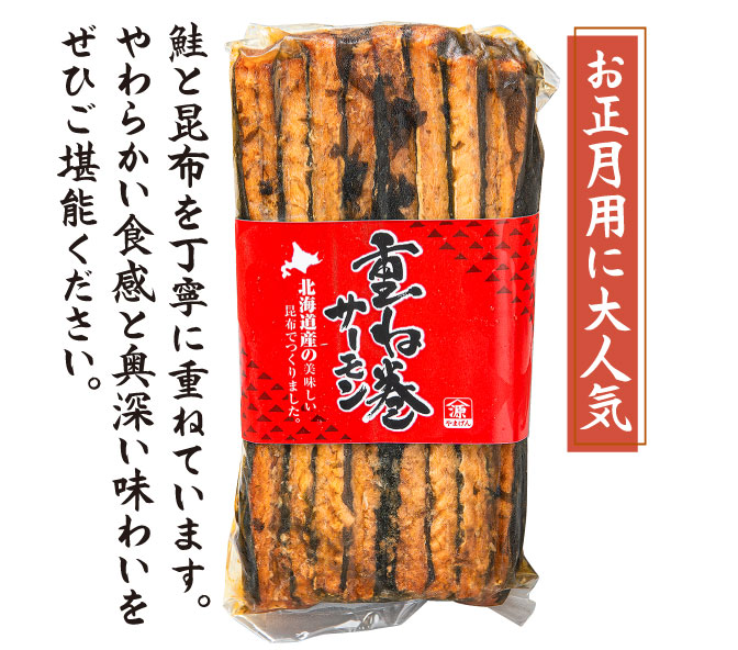 鮭と昆布を丁寧に重ねています。やわらかい食感と奥深い味わいをぜひご堪能ください。
