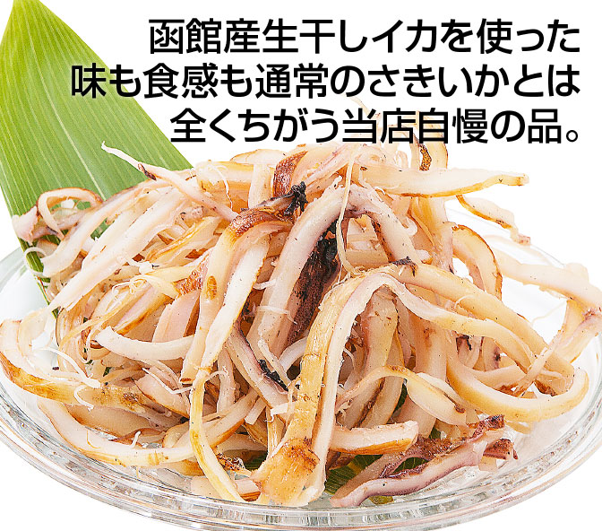 函館産生干しイカを使った味も食感も通常のさきいかとは全くちがう当店自慢の品。一夜干しイカ使用のため賞味期限はお客様へ到着後1週間となります。